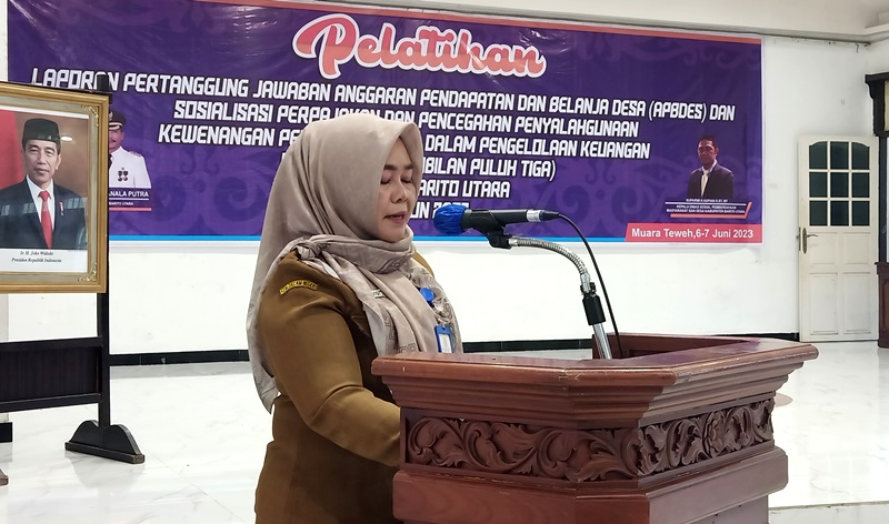 “Diharapkan kepada Camat se Barito Utara untuk melakukan pembinaan dan pengawasan terhadap pelaksanaan pembangunan di Desa,” kata Sekda Muhlis membacakan sambutan bupati pada pembukaan pelatihan laporan pertanggung jawaban APBDes, Sosialisasi Perpajakan dan Pencegahan Penyalahgunaan Kewenangan Pemerintah Desa dalam pengelolaan keuangan desa dan BPD, di gedung Balai Antang Muara Teweh, Selasa (6/6/2023).