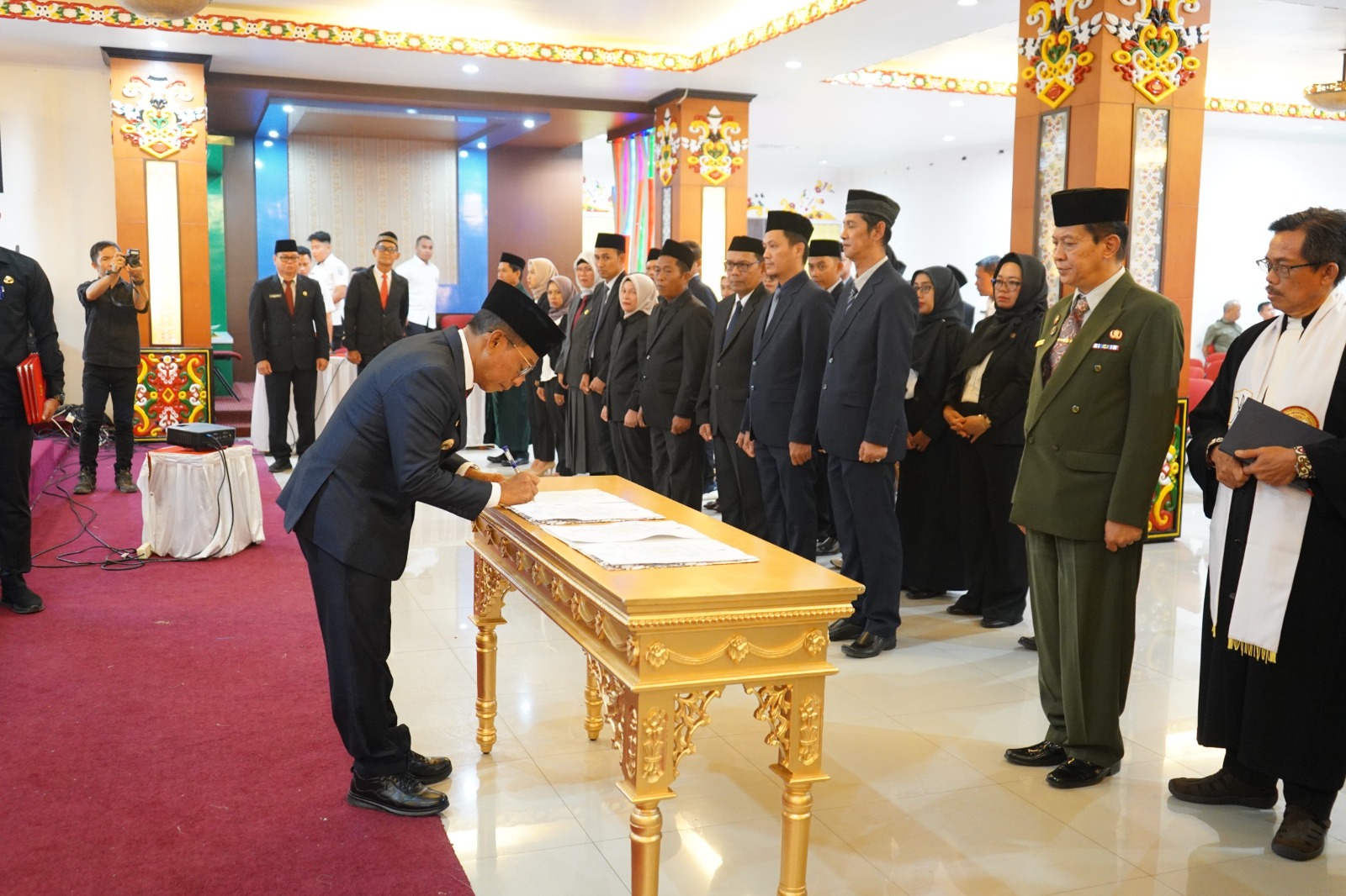 PURUK CAHU – Bupati Murung Raya, Heriyus memimpin Pelantikan dan Pengambilan Sumpah/Janji Jabatan Penjabat (Pj) Sekretaris Daerah, Pengukuhan Pejabat Administrator, Pengawas, serta Pelantikan Pejabat Fungsional di lingkungan Pemerintah Kabupaten Murung Raya.