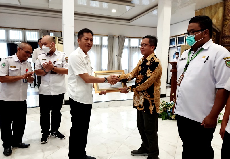 Usai pembukaan Rakernis Kesehatan, Sekda menyerahkan sertifikat kabupaten/kota bebas frambusia yang diserahkan kepada Kepala Dinas Kesehatan, piagam penghargaan Stop Buang Aair Besar kepada kepala Puskesmas Butong Desa Bukit Sawit.