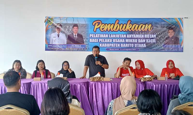 Pada Jumat, 8 Agustus 2025, Kepala Disnakertranskop UKM, HM Mastur, SE, MM secara resmi membuka kegiatan Pelatihan Lanjutan Anyaman Rotan bagi Pelaku Usaha Mikro dan Kecil di Aula Kolam Pemancingan Barakati, Muara Teweh.