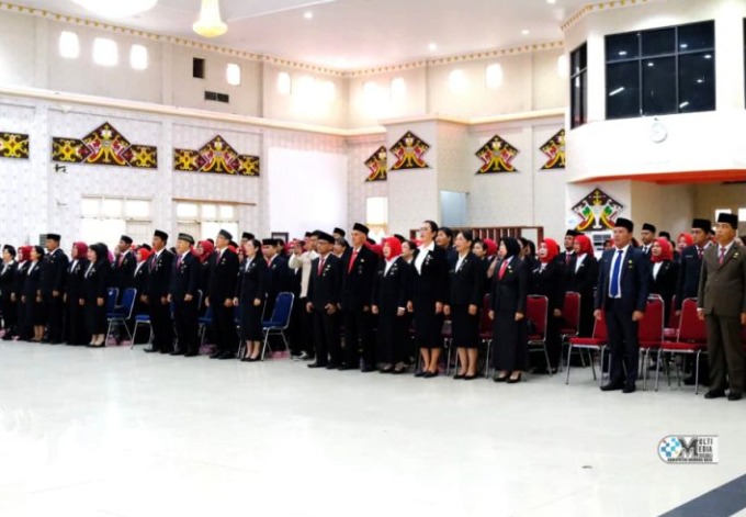 PURUK CAHU – Sebanyak 284 (Dua Ratus Delepan Puluh Empat) Aparatur Sipil Negara (ASN) di lingkungan Pemerintah Kabupaten (Pemkab) Murung Raya mendapatkan penganugerahan tanda Kehormatan Satyalancana Karya Satya X, XX dan XXX tahun. Tanda kehormatan Satyalancana Karya Satya disematkan langsung Bupati Murung Raya (Mura), Heriyus.