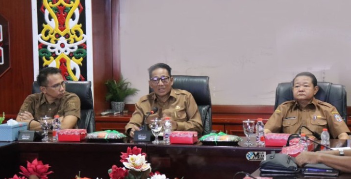 PURUK CAHU – Bupati Murung Raya (Mura), Heriyus mengikuti kegiatan peluncuran 80.000 Koperasi Merah Putih se-Indonesia secara virtual dari Aula A Kantor Bupati Mura, Senin (21/7/2025).