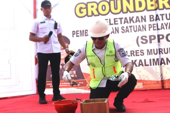 PURUK CAHU – Bupati Murung Raya, Heriyus melalui Wakil Bupati Murung Raya (Mura), Rahmanto Muhidin, didampingi unsur Forum Koordinasi Pimpinan Daerah (Forkopimda), secara resmi meletakkan batu pertama pembangunan Dapur Satuan Pelayanan Pemenuhan Gizi (SPPG) Polres Murung Raya yang berlokasi di Jalan Bhayangkara Km. 12, Desa Danau Usung, Kecamatan Murung, Rabu (6/8/2025).