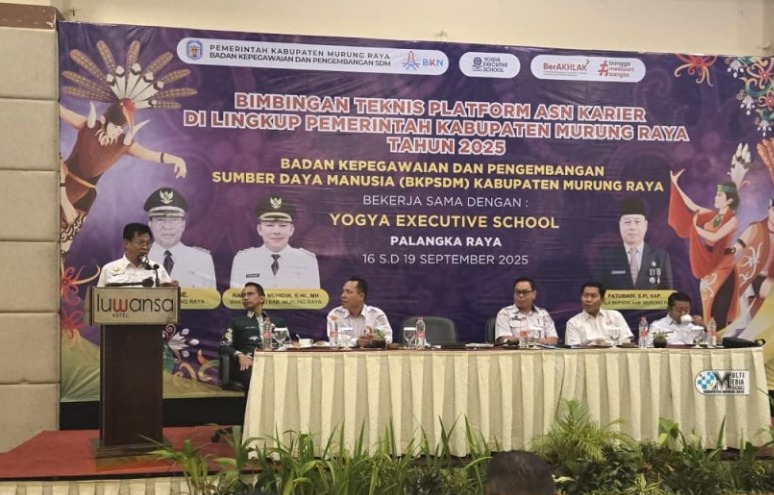 PURUK CAHU – Bupati Murung Raya, Heriyus melalui Plt. Sekretaris Daerah (Sekda) Murung Raya, Sarwo Mintarjo secara resmi membuka kegiatan Bimbingan Teknis (Bimtek) Platform ASN karier bagi pejabat Pimpinan Tinggi Pratama dan Administrator di lingkungan Pemerintah Kabupaten (Pemkab) Murung Raya (Mura), Rabu (17/9/2025).