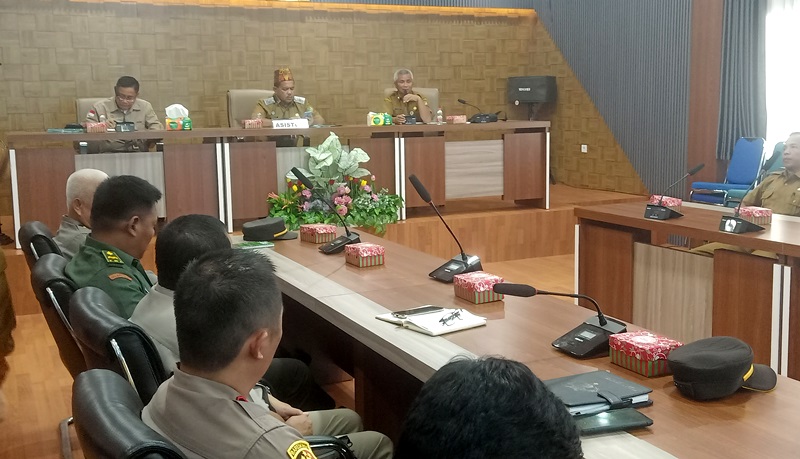 Rapat digelar di Aula Setda Lantai 1 dan dipimpin langsung oleh Asisten Bidang Perekonomian dan Pembangunan Setda Barito Utara, H. Gazali, serta dihadiri oleh Kaban Kesbangpol Barito Utara Rayadi dan Kaban Kesbangpol Barito Selatan Edi Suharto, Kepala BPN Barito Utara, serta pihak terkait lainnya.