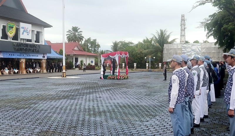 Muara Teweh – Pemerintah Kabupaten Barito Utara menggelar upacara peringatan Hari Lahir Pancasila di halaman Kantor Bupati pada Senin (2/6/2025). Upacara berlangsung khidmat dengan dihadiri jajaran Forkopimda, ASN, TNI-Polri, tokoh masyarakat, pelajar, serta elemen masyarakat lainnya.