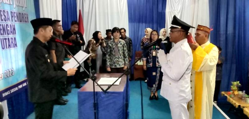 Muara Teweh – Penjabat (Pj) Bupati Barito Utara Drs Muhlis melantik dan mengambil sumpah janji Kepala Desa Antar Waktu (PAW) Desa Pendreh Kecamatan Teweh Tengah, Ating Jarman Kowong, Kamis (9/11/2023) di kantor desa setempat.